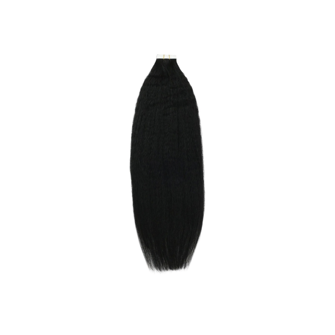 Designed to mimic the look and feel of blown-out or silk-pressed natural hair, our Yaki Straight Tape-Ins are the perfect match for textured leave-out. Soft, full, and lightweight, they blend seamlessly into your real hair for a natural finish with movement and volume.
